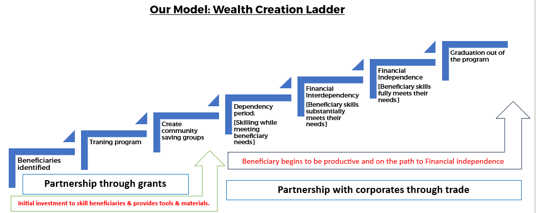 We have a carefully designed program to ensure beneficiaries are skilled in all ways. The training provides wellbeing, self-awareness, and self-confidence building skills to ensure attendees are empowered with a winning mindset. The curriculum includes technical skilling to ensure attendees have relevant skills to be productive ready for employment or entrepreneurship.
